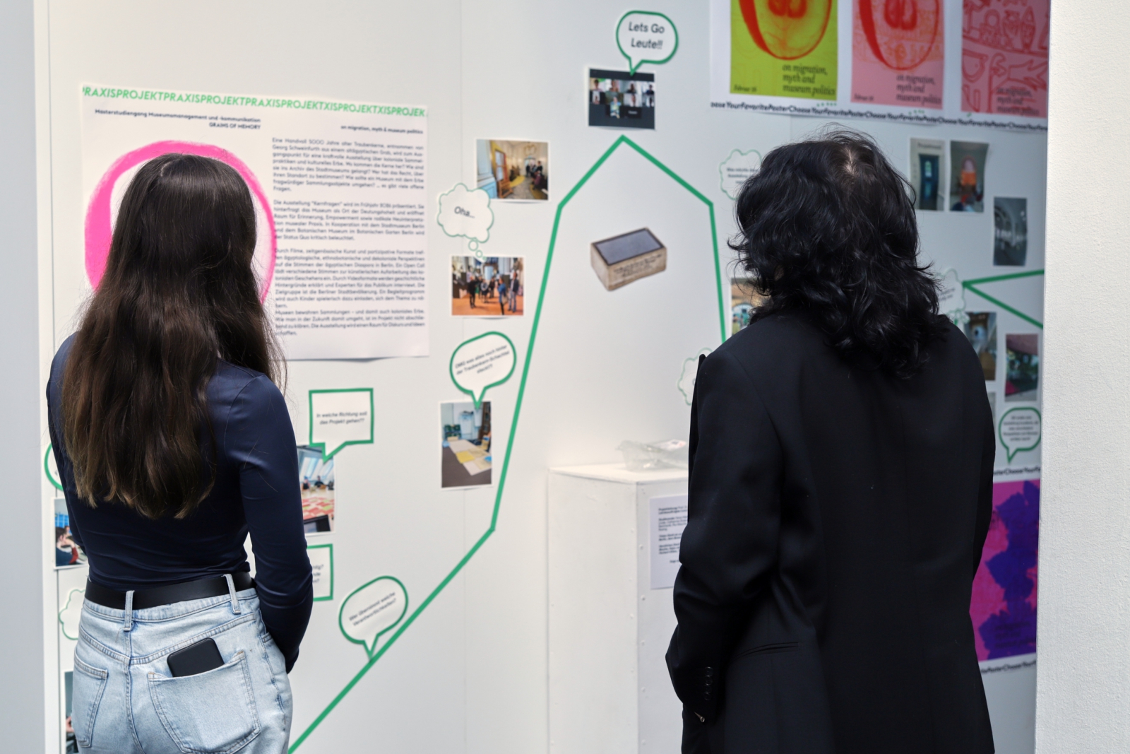 Zudem präsentierten Master-Studierende Ergebnisse ihrer Ausstellung „M wie polyphon. In acht Buchstaben durch unsere Studiengänge“. Ihr Konzept bezog sich die Ausstellung „A wie Jüdisch“ im Jüdischen Museum, wo eine Diskussion zur neuen Museumsdefinition stattfand, organisiert vom Studiengang in Kooperation mit der Akademie des JMBs.